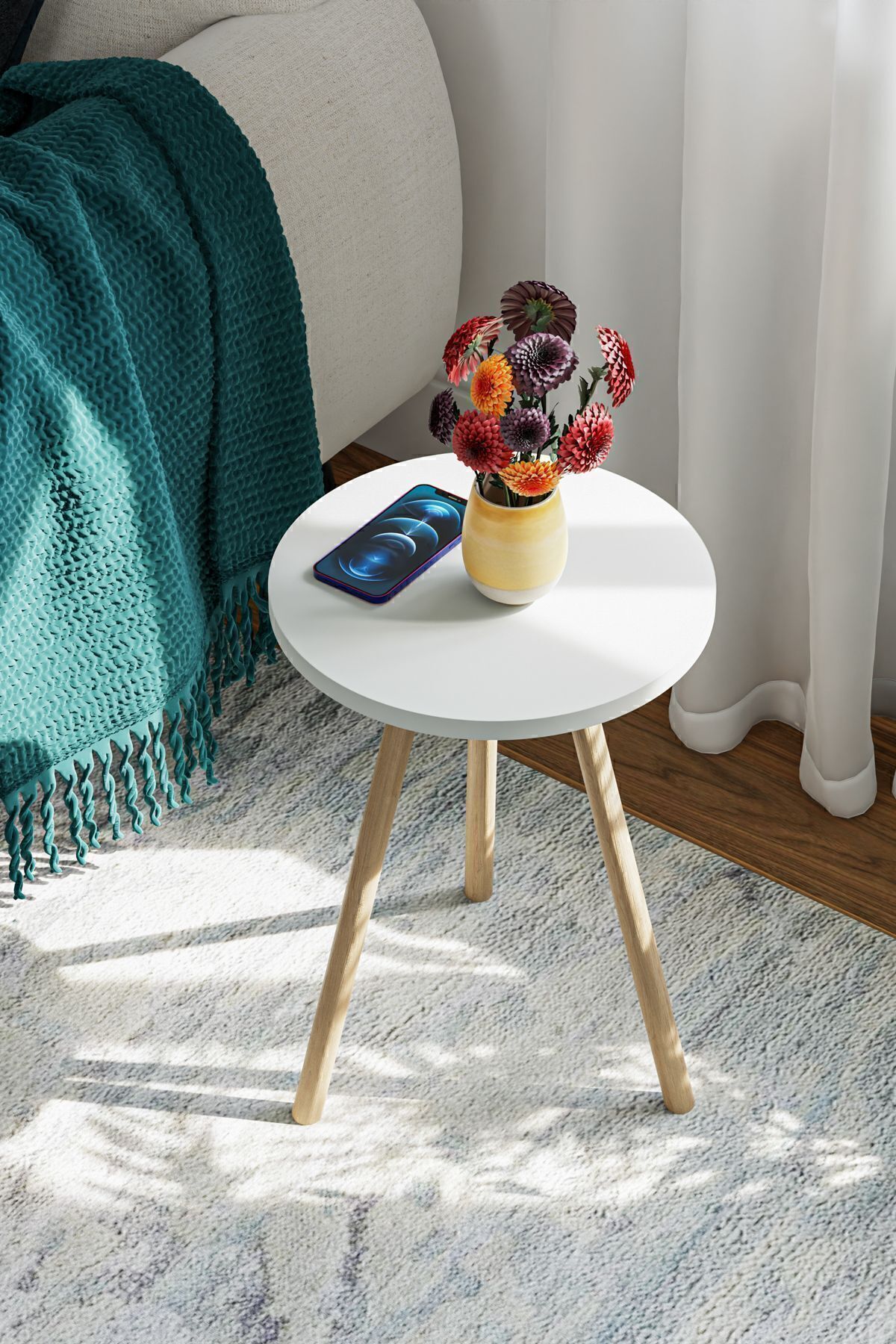 Masă de cafea rotundă cu picioare din lemn – model pin atlantic