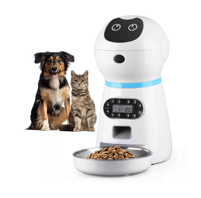 Dispenser hrana automat pentru caini si pisici bol inox inregistrare voce memorie 4 mese infrarosu