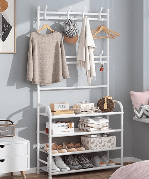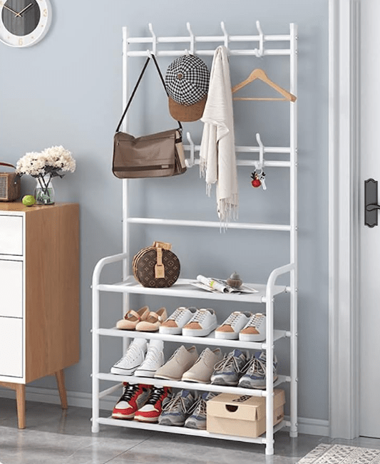 Cuier haine cu suport pantofi, 4 rafturi