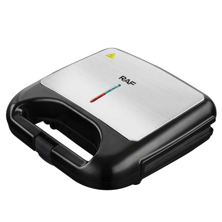 Savurează preparate delicioase și crocante cu Sandwich Maker-ul Tip Grill RAF, un aparat compact și eficient, ideal pentru mese rapide și gustoase. Cu o putere de 750W și plăci antiaderente, acest aparat aduce confort și versatilitate în bucătăria ta.