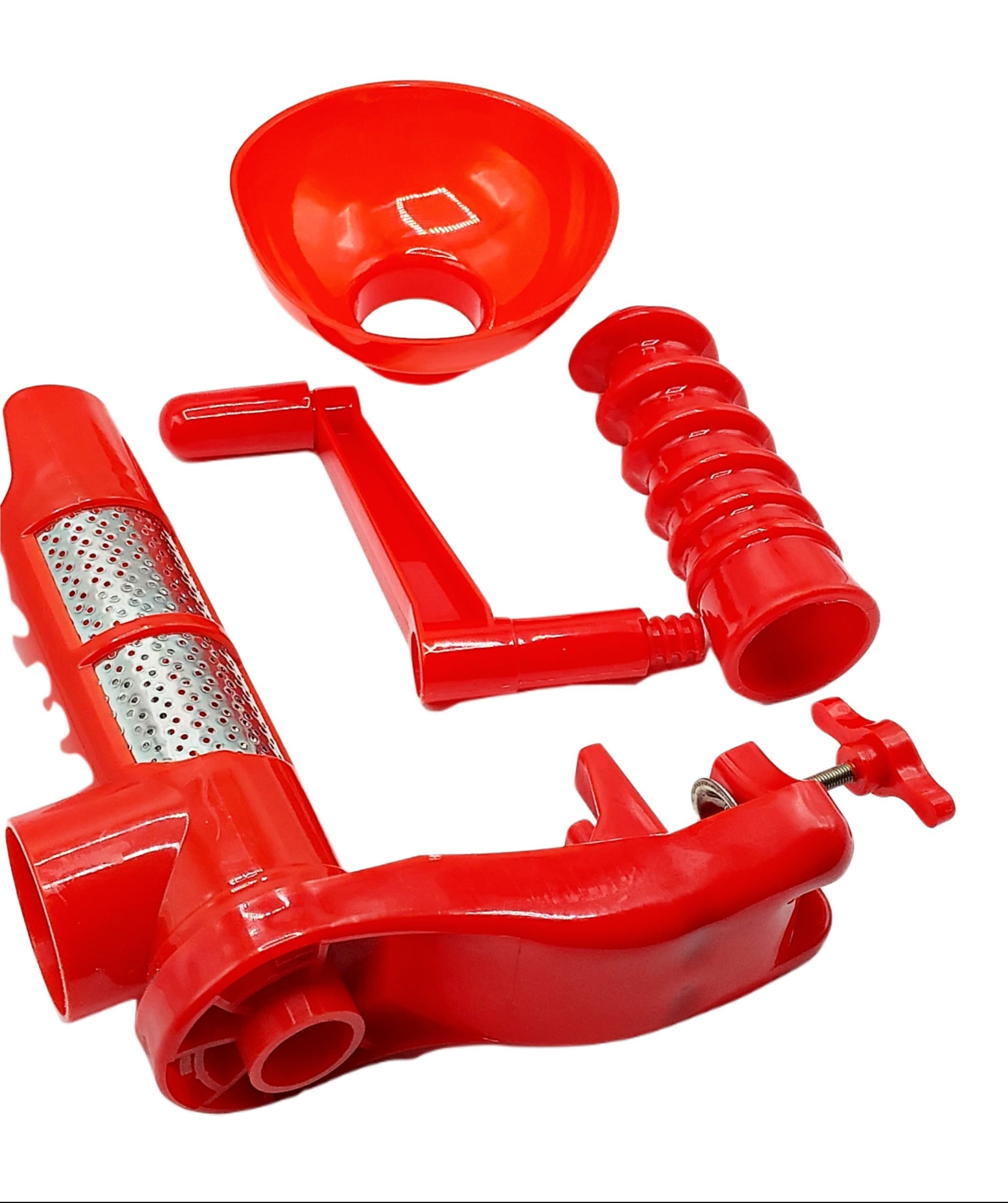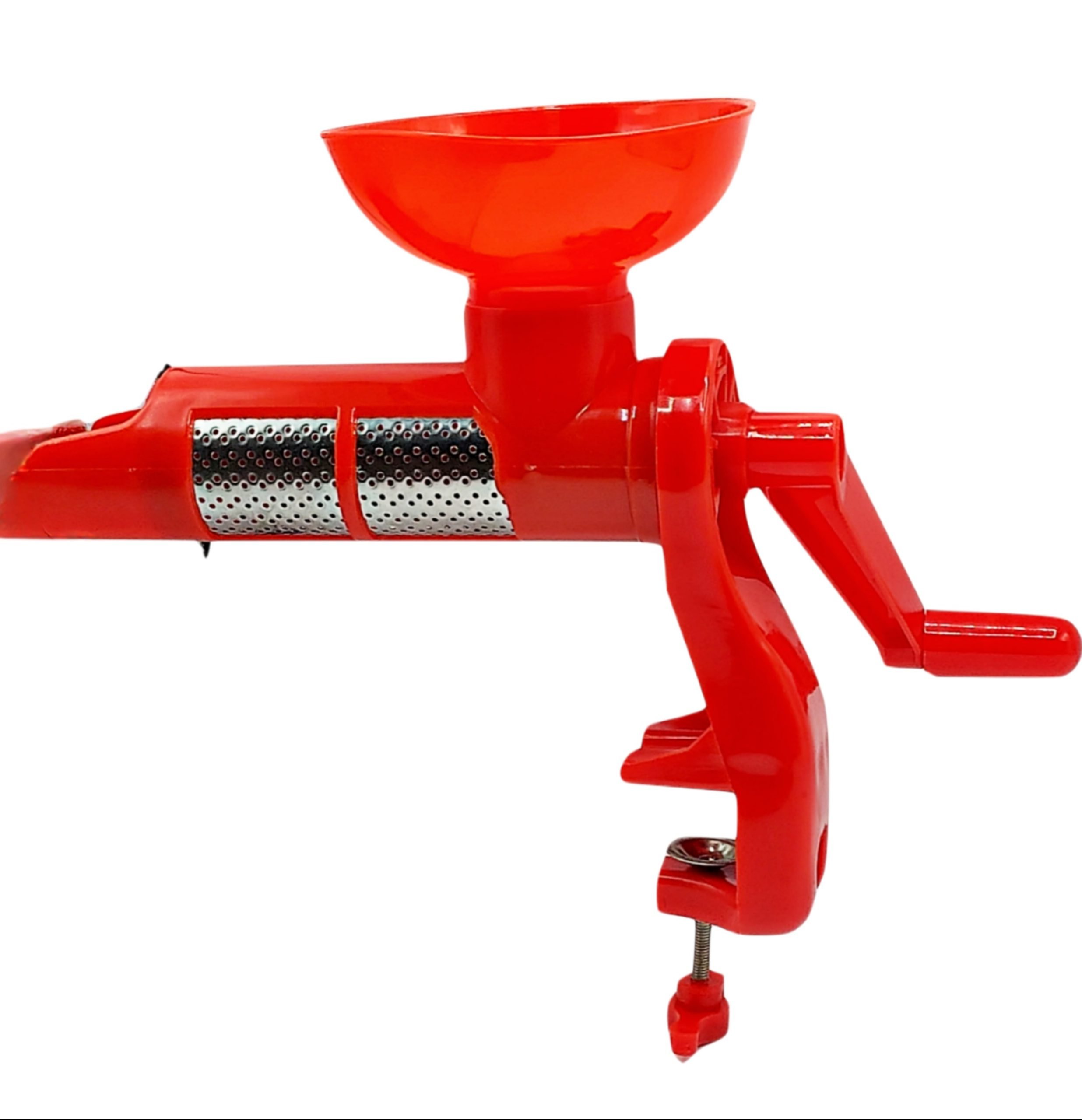 - Masina manuala pentru presat rosii este usor de utilizat, este demontabila, portabila, usoara, poate fi prinsa pe suprafete de lucru de diferite grosimi, se curata usor, separa sucul si pulpa de rosii de coji si seminte