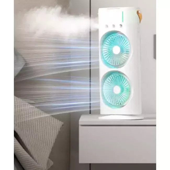 Răcitor de aer portabil cu ventilator dublu, cu tehnologii de umidificare și evaporare. Răcește cu tehnologie de evaporare – umidificare și funcționează ca un umidificator.